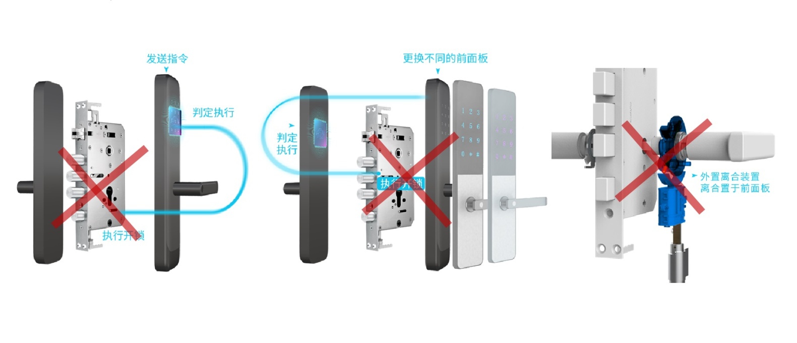 其实有数据粗略统计市面上的智能门锁有99%的都是只有门外一套验证系统的单系统锁。比如市面上很多指纹锁的锁体控制线直接由门外面板控制,撬开给电机接电就能开门;有的由门内面板控制在更换门外面板后就能开门;还有的机械锁体的离合装置直接放在门外面板内,撬开就能开门,这些单系统控制的智能门锁产品存在巨大安全隐患。