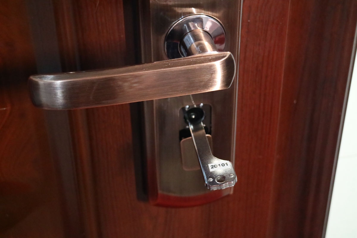 除此之外,我们还从安装师傅口中还了解到,亚太天能T109还针对极端火灾状况做出了极其严苛的防护设计。据悉亚太天能的锁体能够适配98%的门,在安装锁体时只需要用到门上的两个小孔,不会破坏防火门的安装等级。同时锁体内部都装配有不锈钢材质的防火底板,即使火灾来临,不锈钢底板也起到很好的隔绝火焰和浓烟的效果,防止室内抢火的现象。亚太天能这种极端条件下的安全防护设计在市面智能门锁产品里极为罕见,市面上很多锁都会在安装时直接把门锁钻掉,这样既破坏了门原来的结构,还会有安全危险,特别火灾时候。这款T109前后全金属外壳的结构,能在火灾来临时,比市面上大多数采用塑料外壳的智能锁多了一份安全保护。