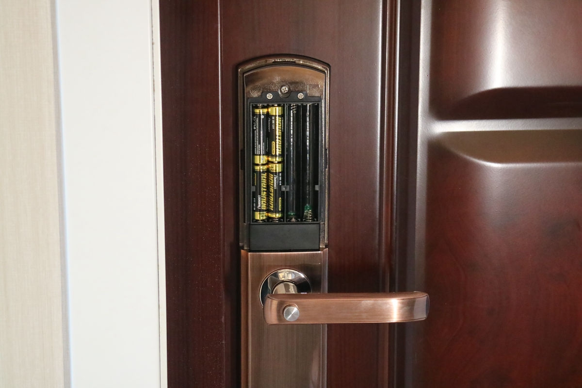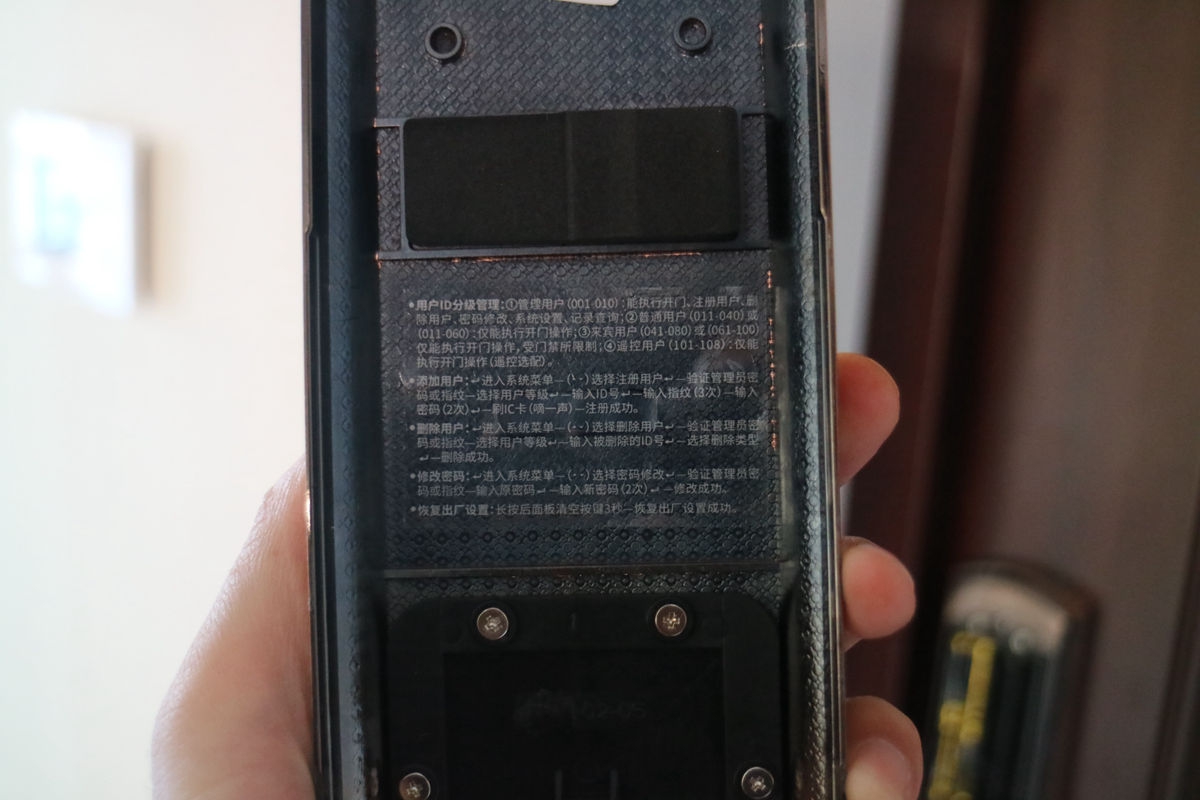 门内锁身上部是超大电池仓,如果装入8粒电池可以至少实现一年多使用续航。