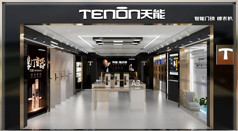 此次升级,亚太天能重点优化门店中区整体布局,通过指纹锁展台版块与智能晾衣机陈列版块的完美组合,打造三维立体全方位产品体验区。模块化的展台设计可根据店铺大小调整,灵活性极强,丰富了店铺产品陈列的形式,推动了终端卖场空间的灵活运用,引领了门锁行业终端体验升级的发展趋势。