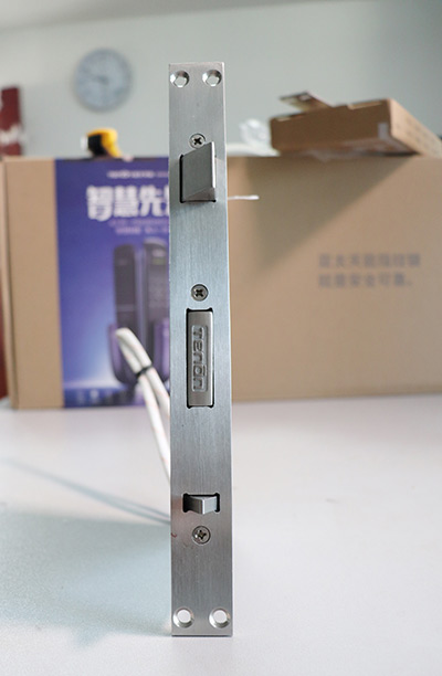 作为一款全自动智能锁,就不得不提它所采用的锁体。从拆箱来看,亚太天能A3采用的是其自主研发的2.5T全自动锁体,尺寸与“国标锁体”保持一致,在安装时无需再另外开孔和调整衬板,而当下多数推拉智能锁在安装时均需另外开孔或改孔。