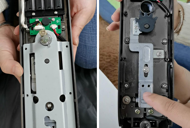 把A3拆开后,产品团队发现内部的排线、线路板、机械传动部件、锁芯等零部件规整的非常整齐,看起来有条不紊。