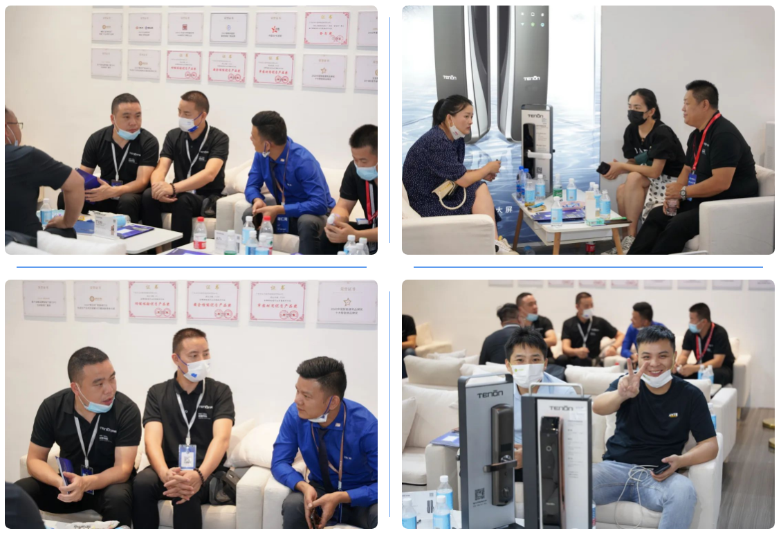 亚太天能从强合作、强品牌、信息化、全渠道、大营销、高定制、供应链等七大方面全面赋能代理商,并在创新模式、终端渠道、营销活动、团队培训等多方面增加对新商的扶持力度,吸引众多意向代理商驻足,洽谈区座无虚席,人满为患,直接印证了亚太天能此次赋能支持力度之大!展会首日,亚太天能便收到加盟意向和工程合作意向超过三百余个,现场签约湖南、江苏、河北等地十余个加盟商,斩获多个智能门、智能锁项目集采。
