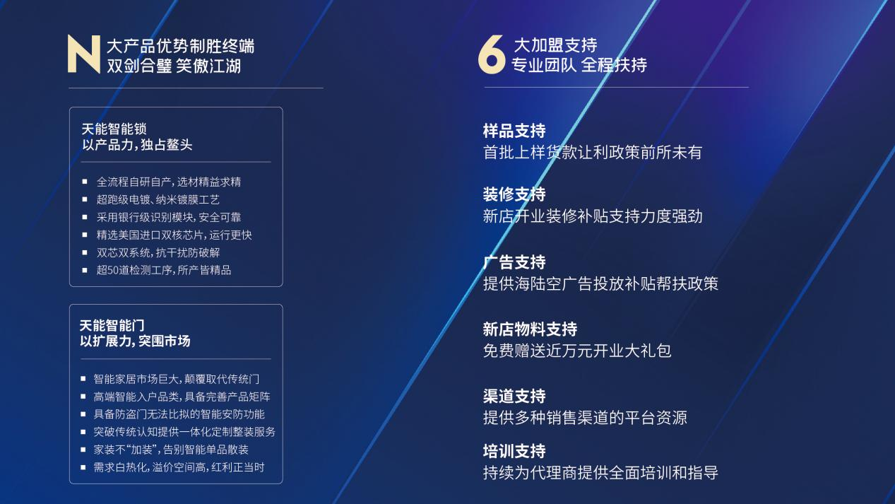 作为智能门锁行业一线品牌的亚太天能,一直立足中国,面向世界,本次展会亚太天能派出史上最强专业团队,为意向代理商准备了全方位加盟优惠政策,包括至优产品搭配盈利方案、促销帮扶、全渠道引流获客、新零售全域营销、线上线下培训等六大加盟支持。