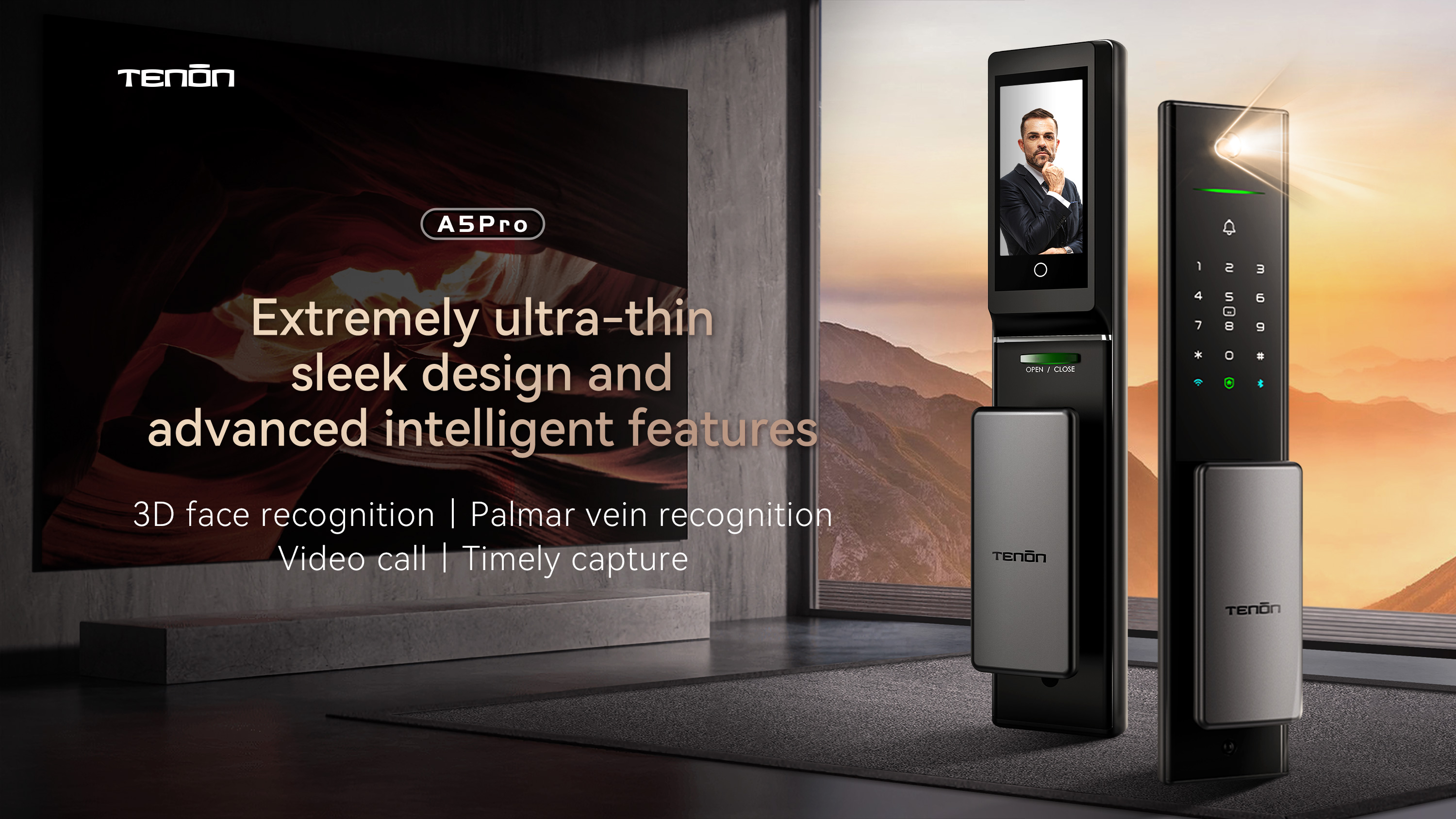 M51w智能门集先进科技于一身,配备了高端的AI双摄像头、专利电子霸王锁体、3D人脸识别技术与掌静脉识别功能,这些元素的巧妙结合,不仅展现了科技、安全与美学的和谐统一,更彰显了其作为智能门的安全可靠性,为海外用户提供了无可挑剔的选择。
