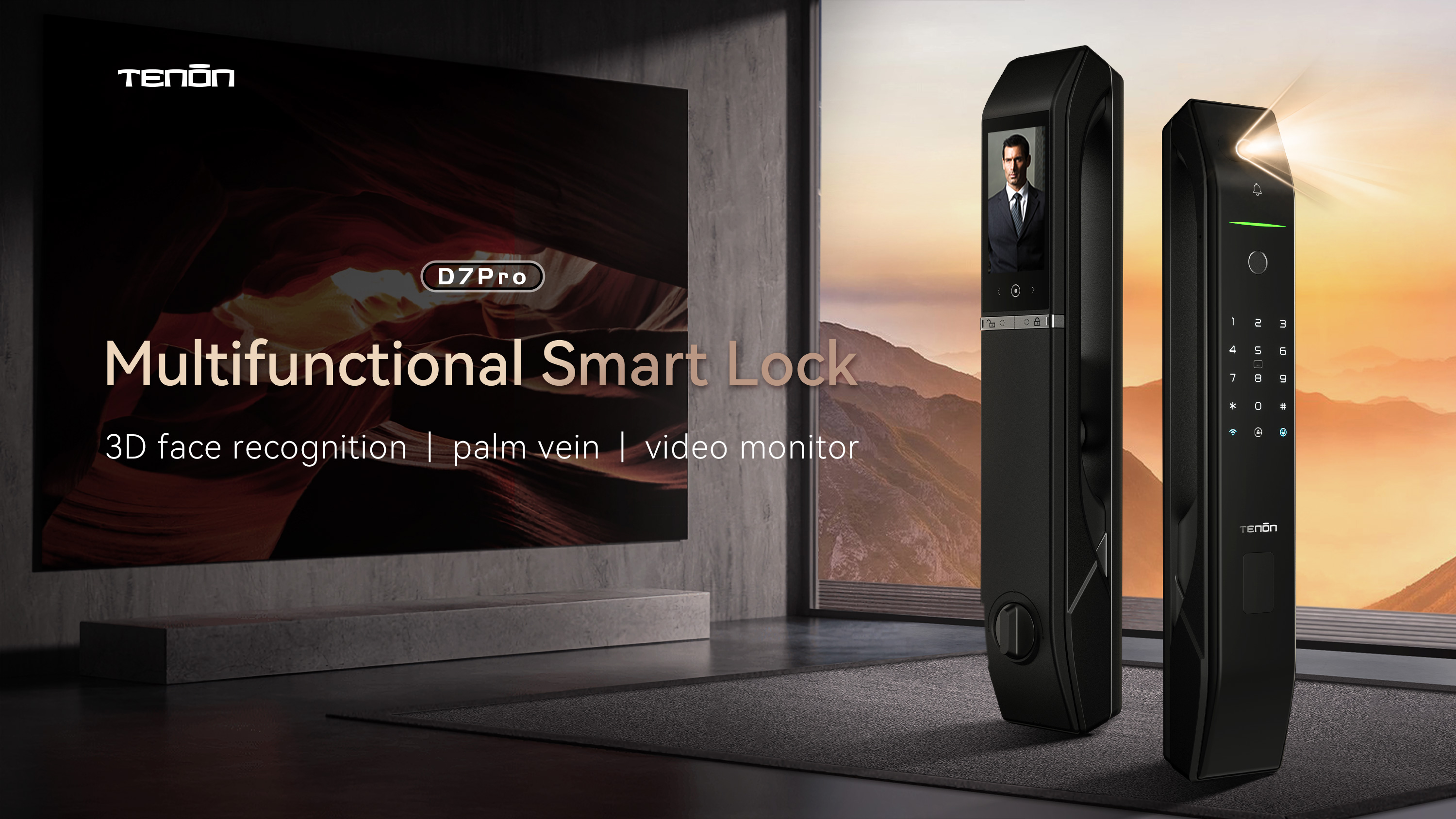 同时,M8pro智能门还搭载了先进的AI三摄像头、专利电子霸王锁体、豪华迎宾拉手、3D人脸识别及掌静脉识别等功能,完美将科技、安全与美观的概念融合,体现了安全可靠的智能门锁功效,为用户提供了更好的选择!