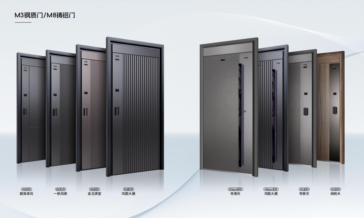 亚太天能全新推出的M3和M8系列智能门,更是以五大顶配的独特优势,快速抢占入户门市场,深受年轻消费群体喜爱。