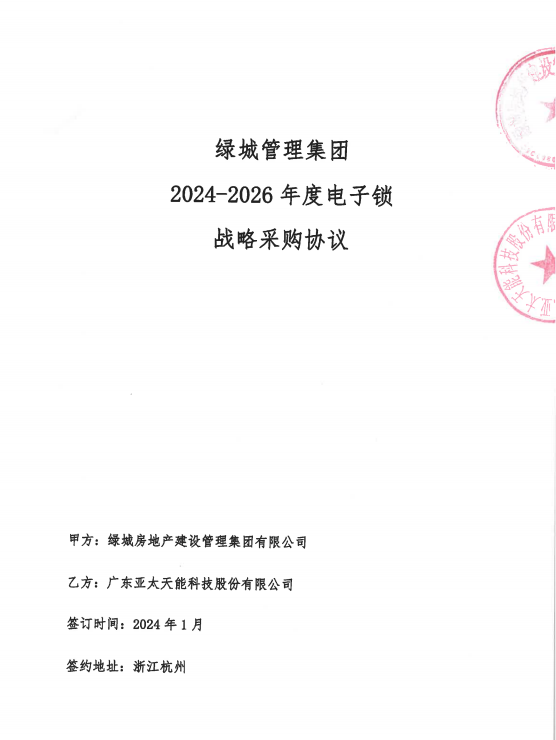 年终将至,中标喜讯纷至沓来!凭借过硬的产品质量、稳固的供货实力以及优秀的工程服务能力,亚太天能连续中标国内多家知名房企战略采购项目,为其提供智能锁或智能入户门的供货及安装服务。中标项目有绿城管理集团战略采购、中天美好集团战略合作、鸿荣源集团战略合作、森湖翠珑湾花园入户智能门制安工程等。能够连续入选战略集采项目,不仅彰显了合作方对亚太天能产品质量及服务体系的高度信赖,更是双方共同致力于推动智慧居住体验升级、携手打造理想生活空间的深刻共鸣与完美融合。