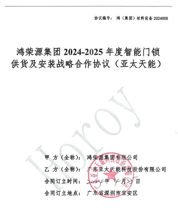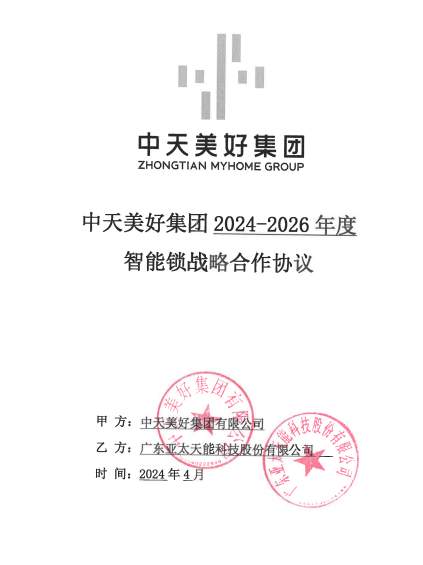 携手高质量伙伴,实现合作共赢。亚太天能将深化拓展房企战略合作,立足长远,着眼全局,继续发挥自身优势,为广大房地产合作伙伴提供更加优质智能锁、智能门产品和服务,为房地产行业的健康发展添砖加瓦。
