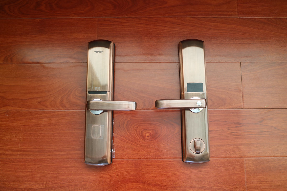 完全拆掉无纺布保护套发现,T109的全合金外壳经过了特殊的电镀工艺后,还加上了一层特别的镀膜,很有光泽和质感,这种镀膜能有效防撞、防刮、耐腐蚀,一般只有高端旗舰级别的门才会使用这种复杂的工艺过程。而市面普遍大多数智能门锁只采用普通的喷涂工艺,由于质感和耐用性上比较差,在视觉效果上就稍逊一筹,而且摸上去和常见的普通金属产品差别不大,长时间使用会出现明显变旧的痕迹。