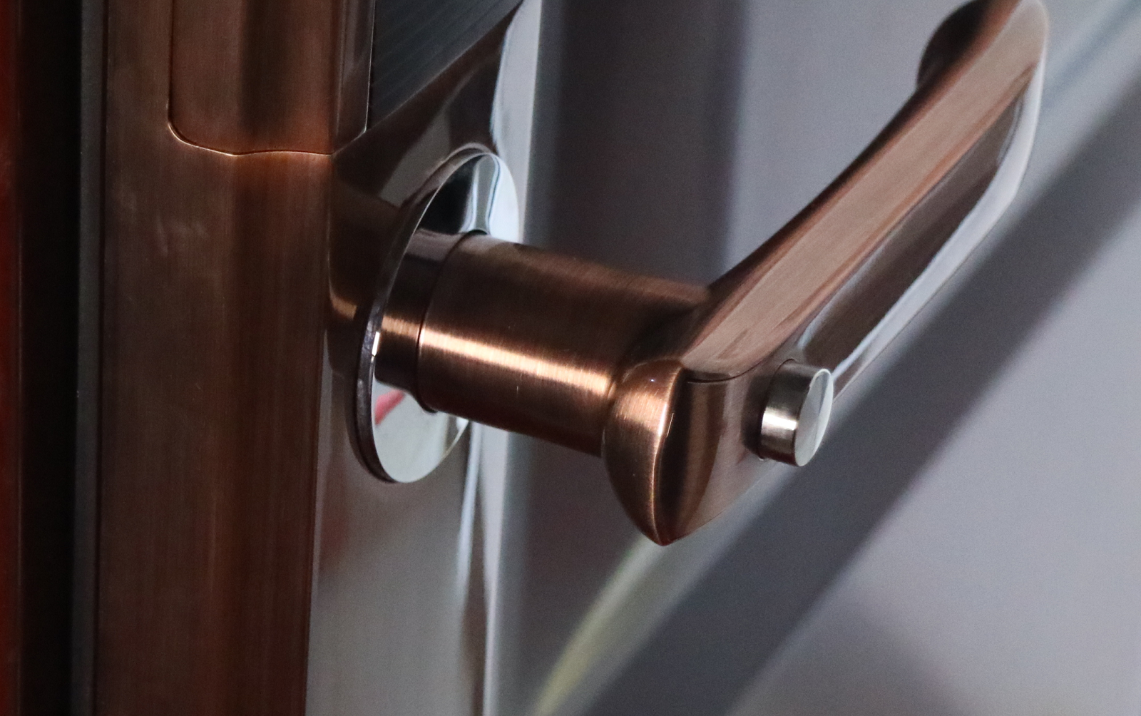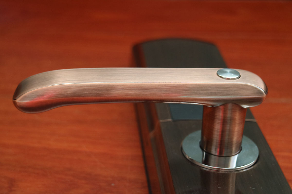 古铜色拉丝工艺的锁身光洁大气,非常耐看,很好地融入了环境,没有丝毫突兀,没有很多智能门锁的塑料感。