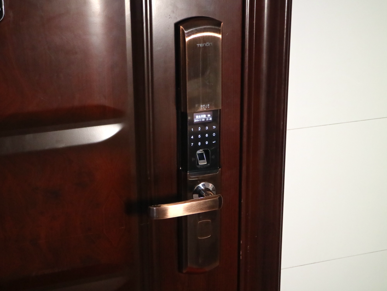 解析了亚太天能的双安全系统后,我们再回到安装。安装师傅在一个小时内就把整个智能门锁完全装好了。