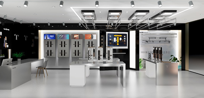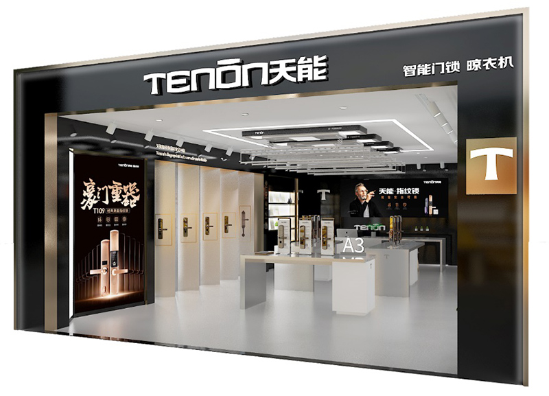 此次升级,亚太天能重点优化门店中区整体布局,通过指纹锁展台版块与智能晾衣机陈列版块的完美组合,打造三维立体全方位产品体验区。模块化的展台设计可根据店铺大小调整,灵活性极强,丰富了店铺产品陈列的形式,推动了终端卖场空间的灵活运用,引领了门锁行业终端体验升级的发展趋势。