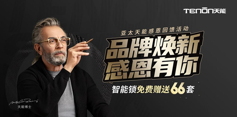 值得一提的是,亚太天能品牌焕新感恩回馈活动正在进行中,为感谢广大消费者一直以来的认可和支持,亚太天能精心挑选66把智能锁随机免费赠送。在4.10-4.25期间,寻找身边的TENON,并提交与“TENON”的合照,即有机会获得亚太天能智能锁一套(详情请关注亚太天能官方公众号)。