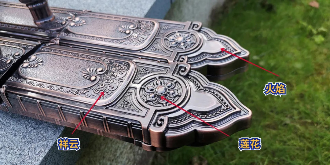 除此之外,F8智能锁的外观方面的细节也非常多。前后锁体的面板上,布满了具有浓浓中国风的图案,例如莲花、祥云、火焰等。
