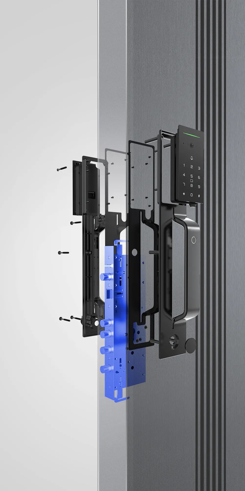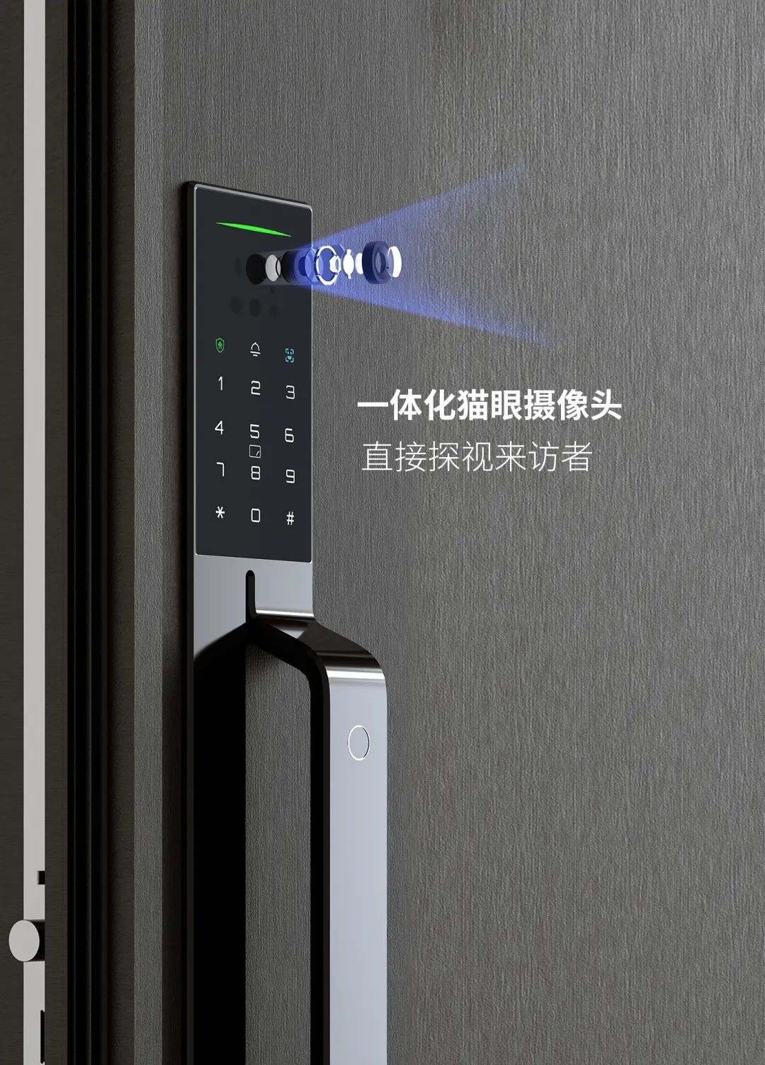 亚太天能智能门,不仅仅是一扇门,更是一个全方位的“智能安防管家”。这是一款集成式一体化智能门,融合"智能门锁+智能门铃+摄像头+智能面板"的功能。不仅拥有强大的黑科技功能,而且外观统一协调,为你带来不一样的艺术生活体验。