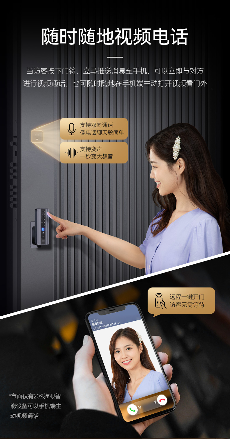 功能卖点:AI双摄 · 掌静脉解锁 · 视频通话 · 全屋互联
